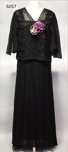 30er Jahre Damenkleid (Abendkleid), Chiffonseide, schwarzes Unterkleid, bodenlang, dazu Bluse leicht transparent, Puffärmel, mit Pailletten und Strasssteinen bestickt, schöner Orig.-Zust., alter Stoffblumenbesatz mittig, V-Ausschnitt