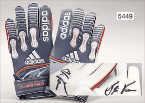 Orig. Triko des Fußballers Oliver Khan, Bayern München, Nr. 1, mit orig. Unterschtrift, ehemaliger deutscher Fußballtorhüter und heutiger Fußballexperte des ZDF, der den größten Teil seiner Profikarriere beim FC Bayern München spielte