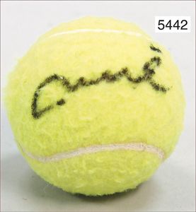 Tennisball mit Orig.-Unterschrift von Amélie Mauresmo, ehemalige französische Profi-Tennisspielerin. Ihren ersten Turniersieg errang sie im Jahr 1999. Einen ersten großen Erfolg mit der Mannschaft feierte sie 2003, als sie mit dem französischen Team den Fed Cup gewann