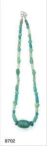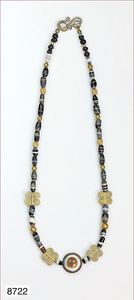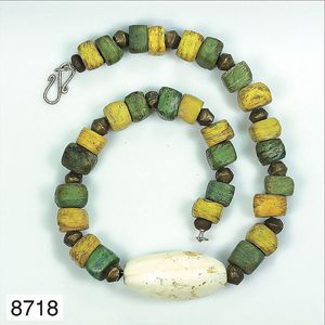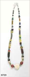Glasperlenkette ( Hebronperlen ), Herstellung 12.-18. Jhdt., Mittelteil alter weißer Achat, 48 cm