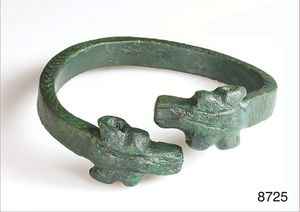 Armreif, Bronze mit Widderkopf, Nomaden/Steppenkultur, vorchristlich (Bronzezeit?), hervorragender, profesionell aufgearbeiteter Zustand