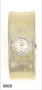 Uhrband, GG 720/000 gepunzt, 23 Diamanten ca. 0,30ct weiß/si-pi-pi,Handaufzug, Uhr läuft (reinigungsbedürftig) 18,0 cm, gesamt 39,5 g