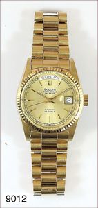 Herrenarmbanduhr, BULOVA, Stahl verg. Automatik, verschraubte Krone, Wochentag auf 12 Uhr, Datum mit Lupenglas auf 3 Uhr, Originalkarton und Garantiekarte 4.3.1992, guter bis sehr guter Zustand