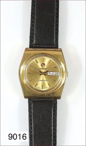 Herrenarmbanduhr, RADO,Stahl verg.mit Lederband, Automatik,Cal.Eta 2879,Tag/Wochentag auf 3 Uhr, ca.1979-1980