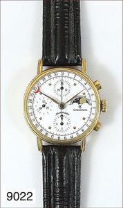 Herrenarmbanduhr,CHRONOSWISS, Automatik Valjoux 7750,Chrono mit Mondphase, Goldgehäuse 750/000, ca 1990 , 36 mm Durchmesser, Originalband