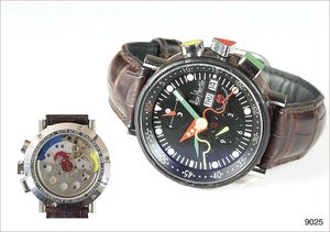 Herrenarmbanduhr, ALAIN SILBERSTEIN, Chrono Bauhaus, Kal.7750, Tag/Datum, kleine Sek.auf 9 Uhr, Gehäuse außen mit Leder verkleidet, orig.Band, mit Papieren von 2002