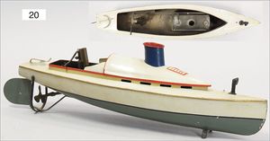 Anfoe (Trix Vorkrieg), 42 cm, Motorboot, Blech lithogr., Batterieantrieb, bespielt, Druckstelle an 1 Seite