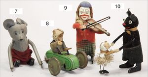 LEHMANN Autin, Blech lithogr., 10 cm, bespielt, Spiralfederwerk klemmt ein wenig, 1 Fuß fehlt, bespielt