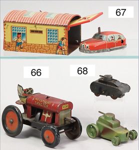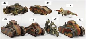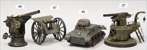 Tank, schwere Blechausführung, lithogr., Uhrwerk intakt, Rohr fehlt, sonst gut, 16 cm, Ketten untersch. gefärbt