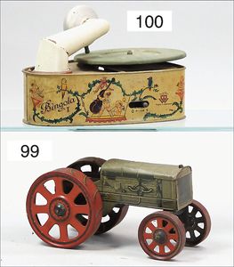 LEVY Tischbahn, Blech lithogr., deutsch, Vorkrieg, Durchm. 25 cm, Uhrwerk intakt, bespielt, altersbed. Lackfehler