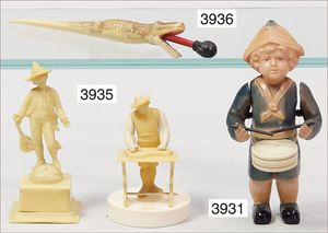 Bayrische Celluloid-Warenfabrik, Nürnberg, 1920, Celluloid-Trommlerfigur, Kind im Matrosenanzug, Trommelmechanismus funktionstüchtig, gem. Germany W im Kreis, 11 cm, dazugehöriger Schlüssel, sehr schöner Orig.-Zust., selten