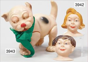 Juno Celluloidkopf, Bonzo, auf Korken, mit Korken Höhe 11 cm, untersch. Ohrenhaltung, toll ausmodelliert, ca. 1920