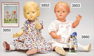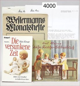 KÄTHE KRUSE Konv., bestehend aus Buch "Das kleine Käthe Kruse Bilderbuch, Abbildungen von Puppe Nr. 1", 20er Jahre, guter Zust., dazu "Westermanns Monatsheft, Käthe Kruse aus den Kinderjahren meiner Puppenwerkstatt", Orig.-Anschreiben aus den 50er Jahren, 1 Buch "Max Kruse, Die versunkene Zeit"