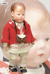 KÄTHE KRUSE Junge, 44 cm, Kunststoffkopf, 50er Jahre, Farbabriebstellen im Gesicht, möglicherweise Frisur von Mädchen auf Junge verändert