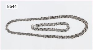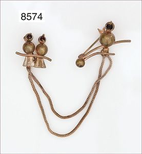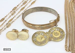 Lot: Double Schmuck, 2 Ketten ca. 132 cm und 148 cm, 1 Brosche, 1 Paar Manschettenknöpfe und 1 Armreif