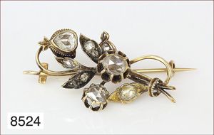 Nadel um 1850, GG 750/000, nicht gepunzt (geprüft), 11 Diamantrosen mind. 1,0 ct, (leicht aus der Form), ein Blatt fehlt