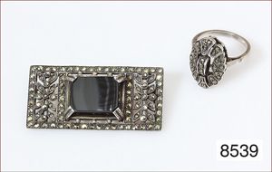 Lot: Ring, Silber, Markasit, RW ca. 49; Brosche Silber 925/000, Markasit, Glas/Onyx ?, 41,0 x 20,0 mm