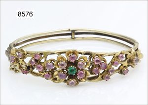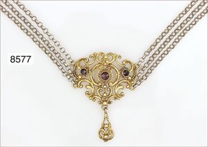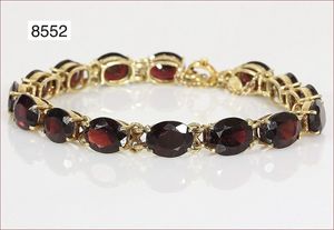 Armband mit Sicherungskettchen, GG 585/000, 15 Granate facettiert (ca 9 x 7mm), L. ca. 18,0 cm, total 17,2 g