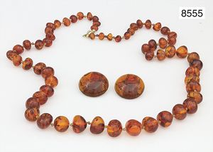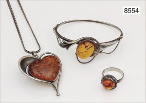 Lot Bernsteinschmuck: Armreif Silber 925/000, Innen 63,5 x 51 mm, Anhänger Silber 925/000, Kette, Silber 835/000, 88 cm, Ring Silber 925/000, RW 60