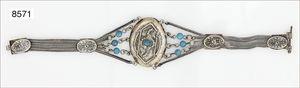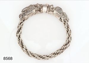Armband, Silber, 2 Drachenköpfe bilden Verschluß mit Kastenschloß und Sicherheitskettchen, wohl China, L. 24,0 cm