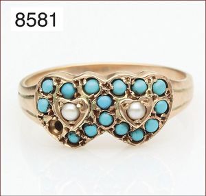 Lot: 1 x Ring, GG 585/000(geprüft), 19 Türkise, RW ca. 52, 1 x Armband, Silber vergoldet(Israel), türkisfarbenes Glas, L.18,5 cm