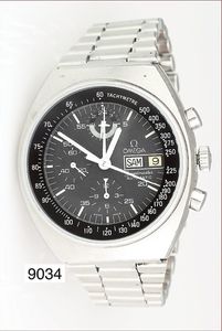 Herren Quarzuhr, OMEGA Speedmaster, Chronograph, Datumsanzeige (Tag & Datum), Tachymeter, Alter 1971-83,Automatik, Kaliber: Lemania 5100, D = 42,0mm, Gehäuse (Stahl), Stahlband mit Faltschließe