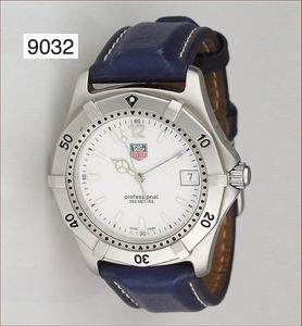 Herren Quarz-Uhr, TAG HEUER, weißes Zifferblatt, Zentralsekunde, Strichindex, Datumsfenster, ca D = 39, Lederband mit Dornschließe, Uhr läuft