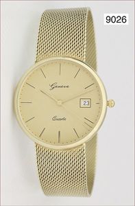 Herren Armband-Uhr, Gold 585/000, Geneve Quarz, Zentralsekunde mit Datumsanzeige, Klappschließe, L. 20,0 cm, D = 33,0 mm
