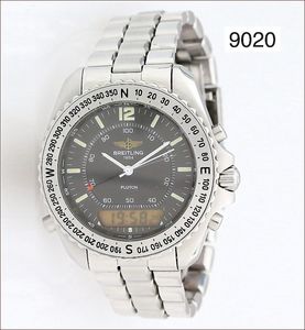 Herren Armbanduhr, BREITLING, PLUTON, Quarz, Ref: A 51038, Mineralglas, verschraubter Boden & Krone mit Drehlunette, Digital-Fenster, Stahl mit Metallarmband und Faltschließe, D = ca. 41,0 mm, H 10,5