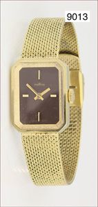 Damen Stahlarmbanduhr, FORTIS, Gehäuse und Band vergoldet, Boden Stahl, Zifferblatt mit Strichindex, Uhr läuft