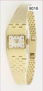 Damenuhr, EBEL, GG 750/000, Handaufzug, Gliederarmband mit Kastenschloß und zwei 8-ter, Zugfeder fehlt, L ca. 16,0 cm, total 15,4 g, Uhr läuft