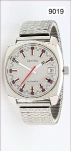 Herren-Uhr, ZENTRA, Automatik, Kal. PUW 1416, Stahl mit Flex-Band, rot unterlegte Indizes & Zeiger, Datumsfenster, D = 35,5 mm