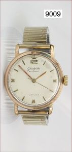 Herren Stahlarmbanduhr, GLASHÜTTE Original, Gehäuse 20 Mik. vergoldet, Boden Stahl, cremefarbenes Zifferblatt mit Zahl / Strichindex und Zentralsekunde, (an Zeigern Teilabplatzung der roten Farbe), Automatik Kaliber 68.1, Stoßsicherung, D = 33,2 mm, Glas muss fixiert werden, Uhr läuft