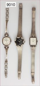 Lot: 3 Damen Uhren,1 x Pallas Silber 800/000, silberfarbenes Zifferblatt mit Strichindex, 1 x Zentra, Silber 835/000, schwarzes Ziffernblatt,1 x Zentra (eckig), Silber 835/000, weißes Ziffernblatt, alle Uhren Handaufzug, Uhren laufen