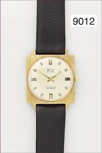Herren Armbanduhr, THOL, 70er Jahre, Gehäuse vergoldet, Zifferblatt mit Strichindex, Zentralsekunde, Kaliber PUW 460, ca. 30,0 x 30 mm, ungetragen mit Originaletikett, Uhr läuft