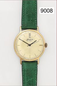 Herren Armbanduhr, GLASHÜTTE Original, Gehäuse 20 Mik. vergoldet, Boden Stahl, goldfarbenes Zifferblatt mit Strichindex und Zentralsekunde, schwarze Zeiger, Kaliber 70.1, Stoßsicherung, D = 36,0 mm, Uhr läuft