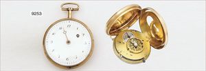 Sehr schöne französische Spindeltaschenuhr um 1800, Sign. Riquir A Amiens Fne Beaugets, 750/000, sehr gut erhaltenes E.Z-Blatt, (Minutenzeiger fehlt), Glas original, Kettenaufzug, Eingedrückt an rückseitiger Gehäusewand, D = 52,0 mm, Uhr läuft