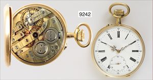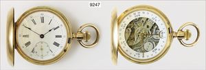 Herren-Taschenuhr um 1900, Double, Sprungdeckel, Ankerhemmung, Breg uetspirale, arab. Zahlen, kl. Sekunde auf 6 Uhr, D = 51 mm, Uhr läuft