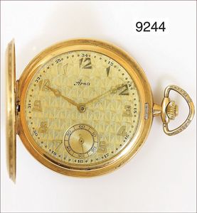 Frackuhr, ART DECO, ARSA um 1930, 585/000, gut erhaltenes, graphisches Dekor auf Gehäuse, Staub Deckel Metall, Brückenwerk mit Ankerhemmung, D = 50,5 mm, Uhr läuft