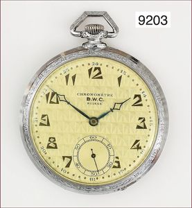 Taschenuhr, ART DECO, BWC Swiss (Chronometer), Metall, Kompensationsunruhe, Brequetspirale, D = 50mm, Rep. Bedürftig