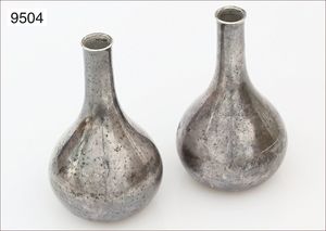 Zwei kleine Väschen, DANSK DESIGNE, Metall, für Räucherstäbchen, grade und schräg zu Stellen, H. 57,5 mm, D = 34,5 mm