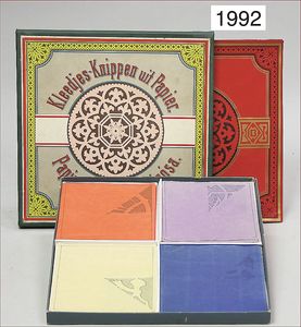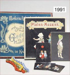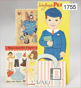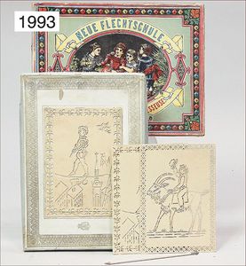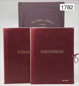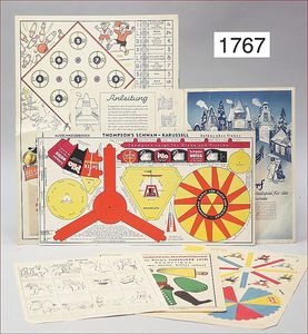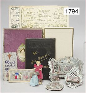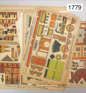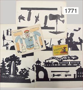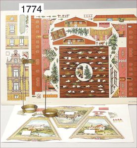 Konv. Ausschneidebögen, Wunderlampenschirm, um 1900, mit Messinghalter, Schreiber Esslingen, 2 Bögen, 36 x 43 cm, Lampenschirm Schweizer Haus, mit Anleitung, um 1900, mit Messing-Halter, Modellierkart., 213,214, Schreiber Esslingen, Villa zum Beleuchten, mit Anleitung, um 1900, Schreiber 435/436, 2 Bögen, 36 x 43 cm, mit Petroleum-Lampenschirmhalter, Messing, signiert J.B. Paris, Durchm. 6 cm, verstellbar, 16,5 x 21 cm, selten