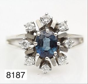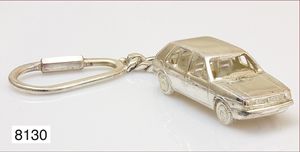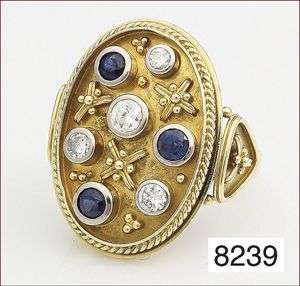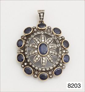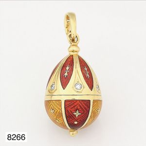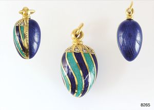 Anhänger, FABERGE-Ei, GG 750/000,Anhänger mit Brillanten 0,06 ct feines weiß/lupenrein, eine Seite blau, andere Seite grün-blau längsgestreift, transluszierendes Emaille, Zertifikat F-1275,Stück 16/500, (Victor Mayer, Pforzheim), Schlaufe zum Öffnen für z.B. Perlenkette