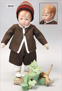KÄTHE KRUSE Friedebald, braune gemalte Augen, Augen sowie Mundpartie farbl. ausgebessert, abgenähte Kniekehlen, keine Kopfnaht unter der Perücke zu erkennen, 51 cm