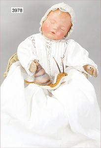 KÄTHE KRUSE Träumerchen, 46 cm, Magnesit-Kopf, geschl. Augen, fein ausgemalte Haare, Trikot-Körper, beschwert, mit Poloch und Bauchnabel, Daumen aufgerieben, Nasenspitze sowie 2 Stellen auf der Stirn Farbabrieb, altes Taufkleid