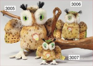 STEIFF Eule Witty, kompl., mit Knopf, Schild und Fahne, Brustschild, Nr. 2620/22, Filz sowie Mohair unberührt, 23 cm hoch