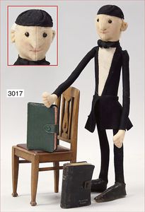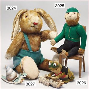 STEIFF ausgef. Teil der Steiff-Produktion, Lehrer, mit Knopf, minim. Reste der weißen Fahne, minim. Bemalung, Filz in gutem Zust., kl. Filzfehler an den Fußsohlen, 40 cm, selten