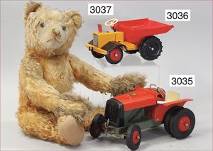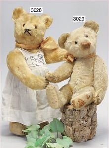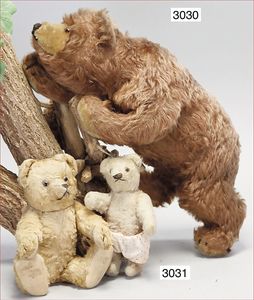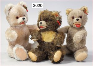 SCHWIKA 3 Plüschtiere, wohl Österreich, 50er Jahre, 2 Teile Bärenkinder, 25 und 27 cm, mit Schild, guter Zust.