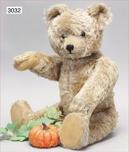 STEIFF Bär, ca. 1930, 36 cm, gelbes Mohair, lange abgeknickte Arme, Buckel, mit Knopf, langgezogenes F, ein wenig Mohair-Verlust, schöner Ausdruck