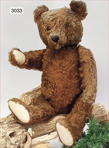 STEIFF Orig.-Teddy, 50 cm, U.S.-Zone, dunkelbraun (seltene Farbe), mit Knopf, Reste gelber Fahne, mit US-Fahne, leicht abgeknickte Arme, Filz in gutem Zust., Mohair bis auf minim. Stellen gut, schöner Ausdruck, schöne Gr.